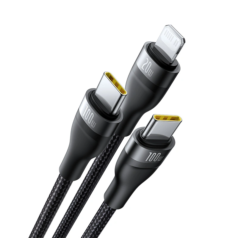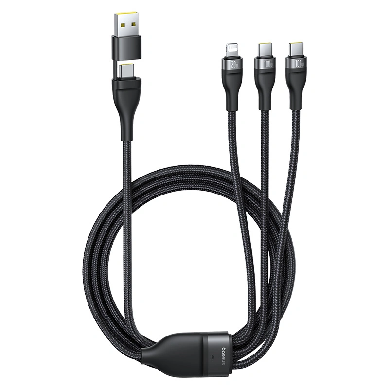 Baseus 1.5M Flash Series 3 Two-for-Three U+C to C+C+L 100W Fast Charging Cable – Cluster Black – Model: P10377501111-00