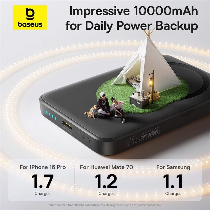The Baseus EnerFill FM11 Ultra-Mini Magnetic Power Bank offers 15W magnetic wireless charging and 22.5W wired fast charging in a sleek, compact body. Its strong magnetic connection ensures a stable hold while charging, making it perfect for MagSafe-compatible devices. With a 10,000mAh capacity, it provides reliable backup power for your daily needs.