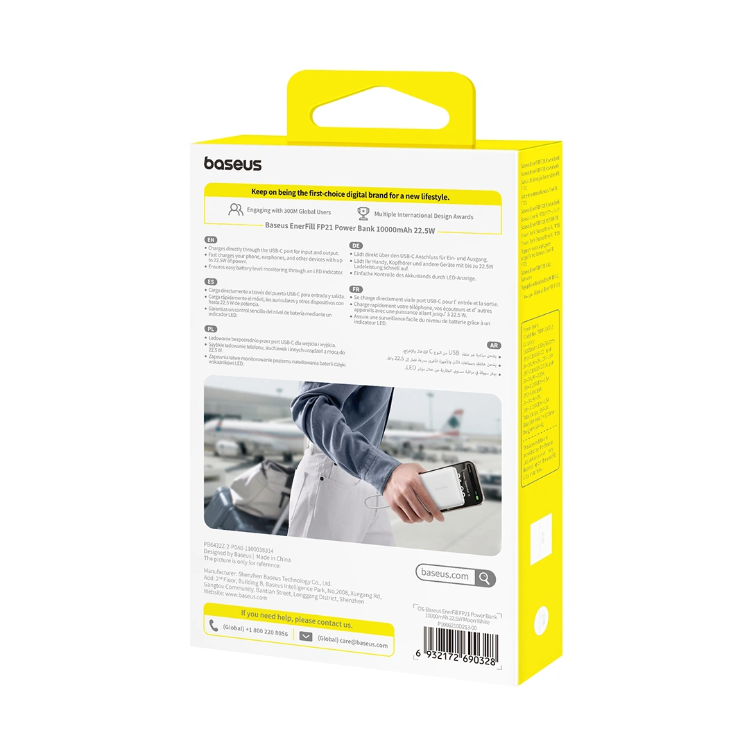Baseus 10000mAh 22.5W EnerFill FP21 Power Bank – (Moon White) – Model: P1008210D213-00