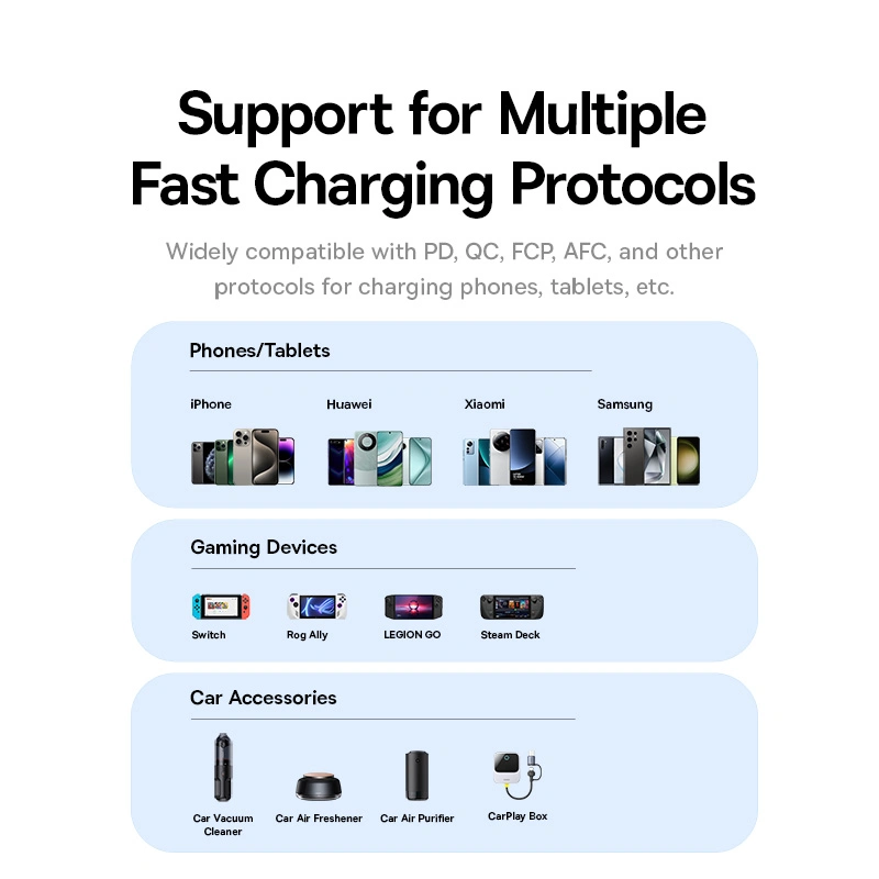 Smart charge protocols: Automatically adjusts output based on connected device for optimal and safe charging.