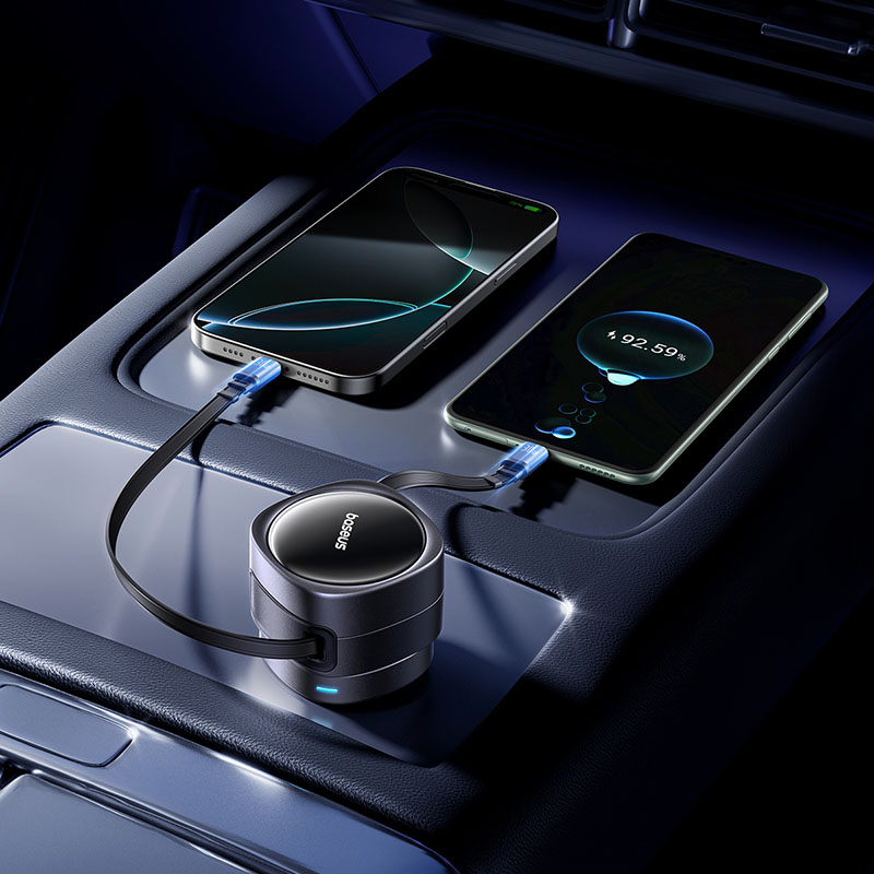 The Baseus Enjoyment Max is a compact and sturdy car charger with a stylish Cosmic Black PC–ABS finish. It’s designed with a rotatable 180° swivel body for flexible positioning in various vehicles—and spring-loaded grips ensure it remains stable even on bumpier rides