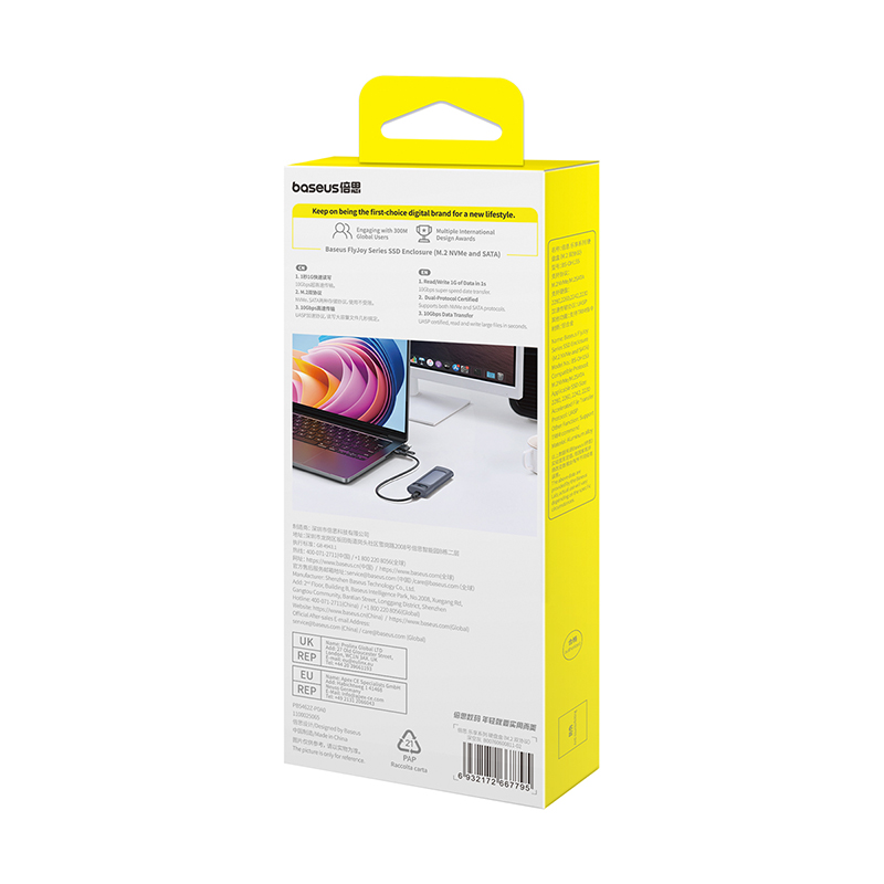 Baseus FlyJoy Series SSD Encl0sure(M.2 NVMe and SATA) (Dual Cable USB to C & C to C) Space Grey – B00760600811-02