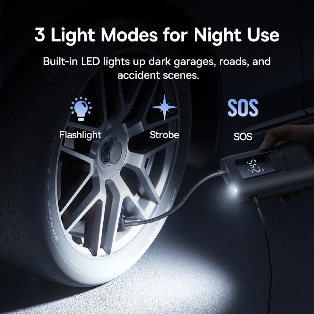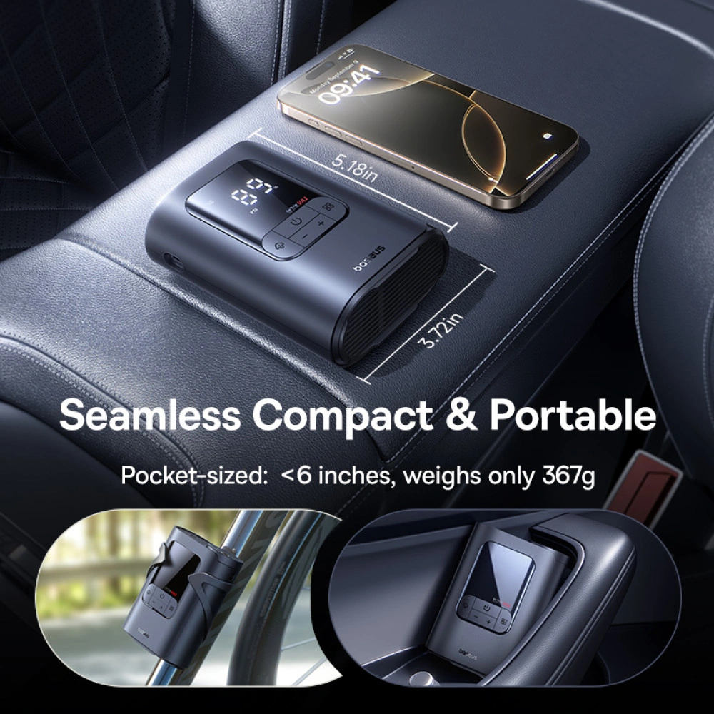 The Baseus GoTrip VA1 Super Mini Wired Inflator (Model C0119701, Cosmic Black) is the perfect tool for drivers, cyclists, and outdoor enthusiasts. Compact, powerful, and versatile—with emergency lighting and multiple inflation modes—it provides fast, reliable inflation whenever and wherever you need it, backed by a 1 Year Warranty.