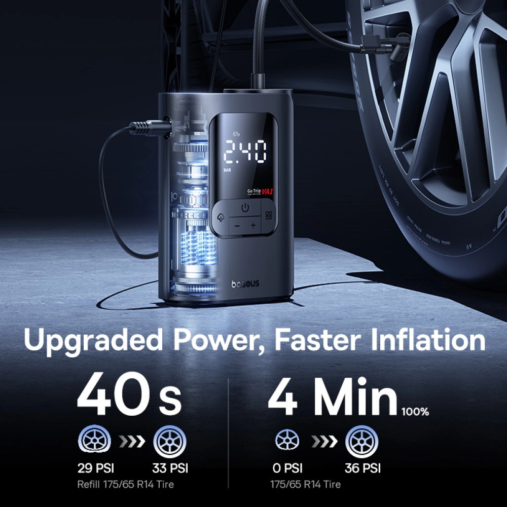The Baseus GoTrip VA1 Super Mini Wired Inflator is a compact, high-power inflator designed for cars, bikes, and other inflatables. Featuring a 22-cylinder motor with 110W max power, it delivers rapid inflation for tires and other items. The corded design allows plug-and-play operation, so there’s no need to worry about batteries, making it perfect for emergencies and roadside use. With 5 inflation modes, it meets various inflation needs efficiently.
