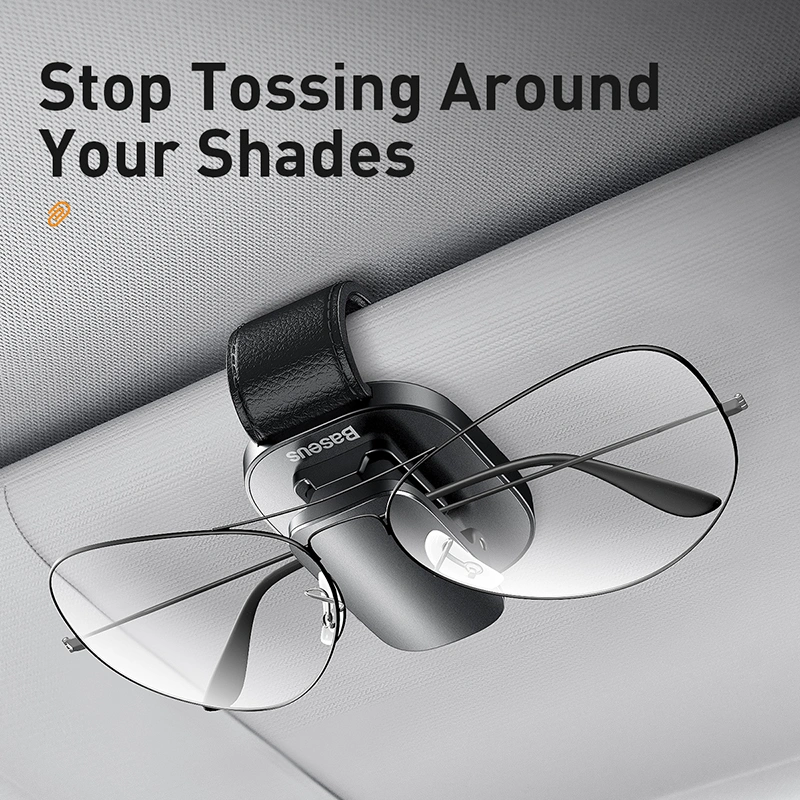 The Baseus Platinum Vehicle Eyewear Clip is a sleek and practical accessory for your car, keeping your sunglasses or glasses secure and easily accessible. Designed with a clamping mechanism, it ensures a firm hold on your eyewear while driving, preventing scratches or loss. Its elegant black finish complements any car interior.